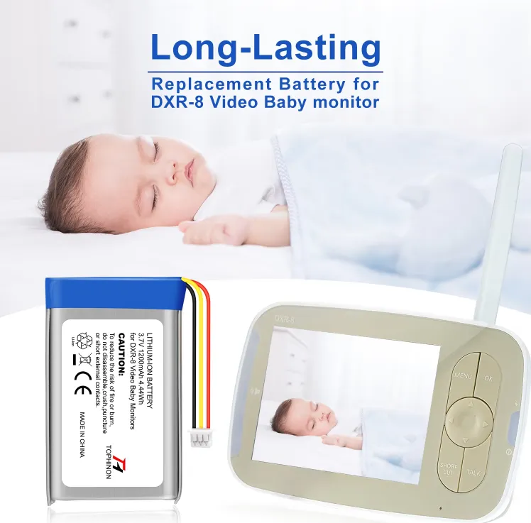 This TOPHINON replacement lithium-ion battery is a perfect power solution for DXR-8 Video Baby Monitors. Designed as a direct-fit replacement for the original battery, it delivers reliable 3.7V power with a 1200mAh capacity, ensuring extended runtime for continuous baby monitoring.